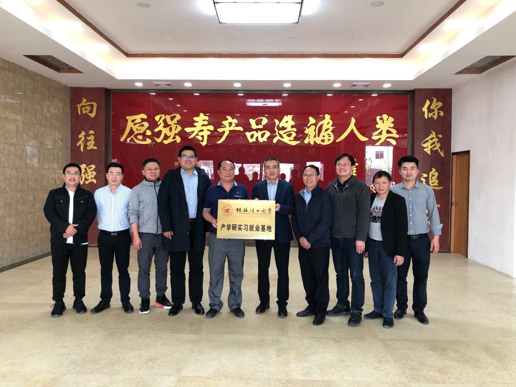 副院长何方一行四人到广西强寿药业集团(以下简称集团)开展合作洽谈并举行产学研实习就业基地挂牌仪式。梧州市科技局党组书记徐军、集团董事长李浪辉等领导出席了挂牌仪式。