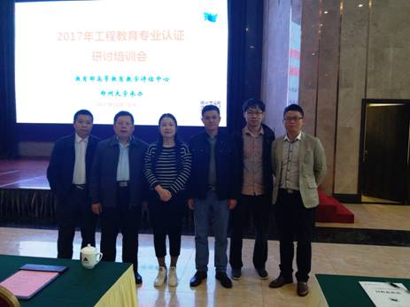 潘宏程、刘峥、李和平、李海云、范大勇、黄斌一行6位老师参加了在河南郑州举行的2017年工程教育专业认证研讨培训会。本次会议由教育部高等教育教学评估中心主办,郑州大学承办。会议结合了工程教育改革发展形势,就产出导向教育(OBE)、工程教育认证标准和毕业要求达成评价等有关内容进行了培训和研讨,主要内容包括如下几个方面:1、我国工程教育改革与发展;2、新时期评估制度与工程教育认证;3、工程教育认证理念与教学改革;4、工程教育认证标准解读;5、毕业要求达成评价;6、OBE教学体系构建与实施。