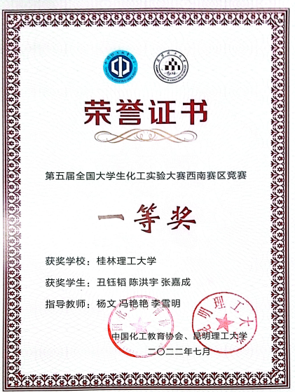 组织化学工程与工艺专业2020级74支队伍222人参加了西南赛区的选拔赛,最后有4支队伍12人进入西南赛区决赛(云南,昆明理工大学进行)。西南赛区决赛于2022年7月9日至12日由昆明理工大学承办,并组织线上进行。