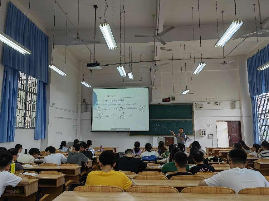 王桂霞老师主讲了《化工原理》中“干燥介质空气的性质参数”的内容。教学内容思路清晰,将以学生为中心的教学理念很好的融入到课堂上;李雪明老师主讲了《化学制药工艺学》中“硝化反应的工艺原理”的内容,讲解由浅入深,同时穿插课堂提问和课堂练习,学生积极参与课堂互动