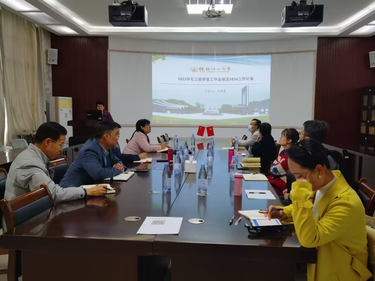 在雁山校区12217举行各专业2023年教学工作总结及2024年工作计划教学研讨会。化学化工教研室主任王桂霞老师参加了会议,并对化工专业在2023年的主要工作进行了简单总结汇报。