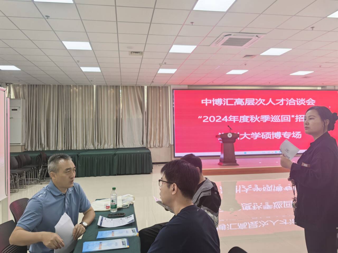 何方副院长一行参加“中博汇高层次人才洽谈会—2024年度秋季巡回招聘会”-9月28日郑州大学专场。 招聘会上,工作人员耐心细致地向博士们介绍了我校办学情况、学科建设、发展前景、引才政策等,并就编制、薪酬、个人发展等博士们关注的问题一一进行了解答。招聘会现场受到了大量相关专业博士人才的青睐,收到简历100余份,希望将来能够补充桂林理工大学教师队伍,为学校的内涵式发展输入新鲜血液。