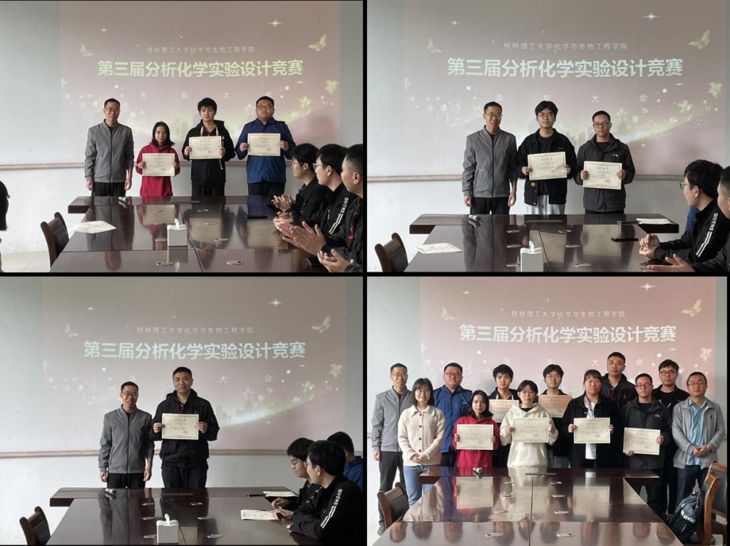 颁奖仪式于2024年4月8日雁山12217举行,孔翔飞副院长、院长助理袁亚利教授及应化教研室多位教师参与了颁奖活动。仪式最后,孔翔飞副院长对竞赛提出了期望,鼓励将竞赛办好、办大,办成应化专业的特色。