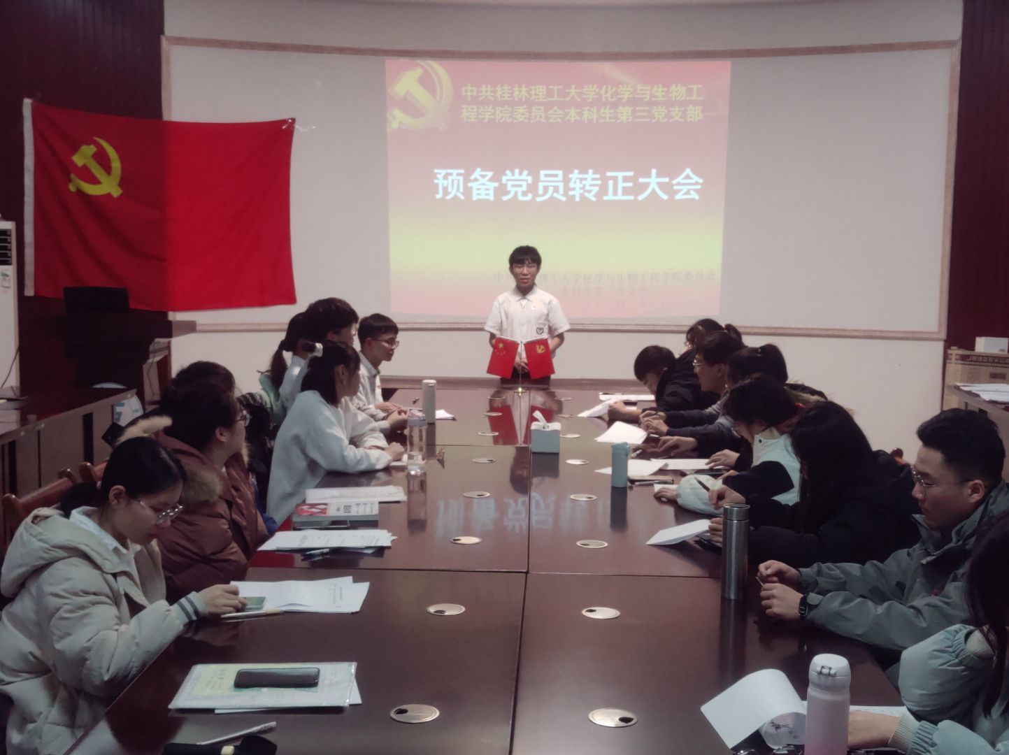 本科生第三党支部于12217召开预备党员转正大会。本次会议由支部书记熊艳主持,支部全体党员同志参加。