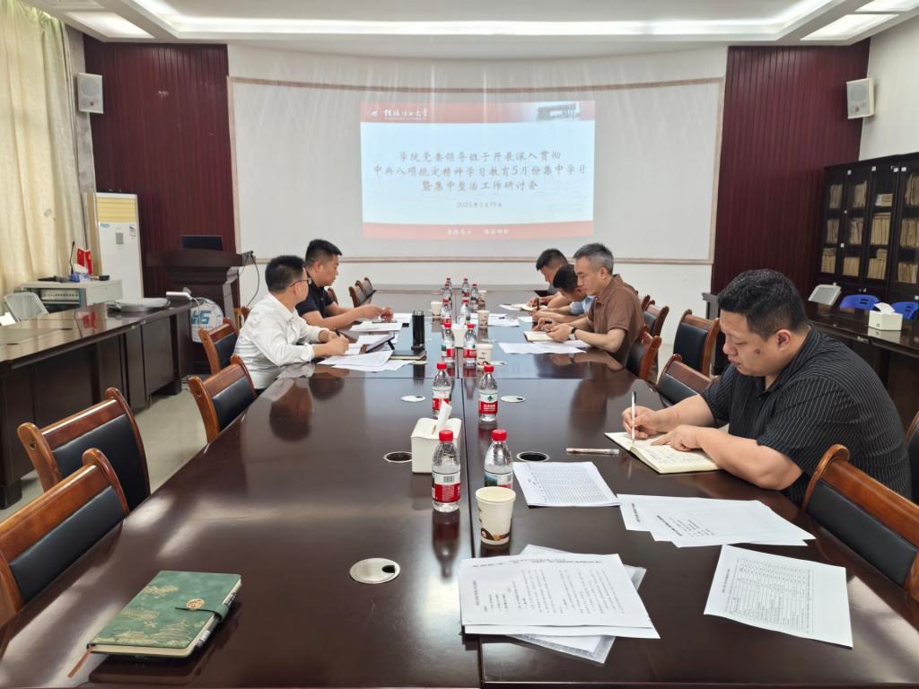 5月19日,学院党委领导班子深入贯彻中央八项规定精神学习教育5月份集中学习暨集中查摆整治工作研讨会在雁山校区12217会议室举行。会议由学院党委书记彭代江主持。党委领导班子全体成员出席会议。