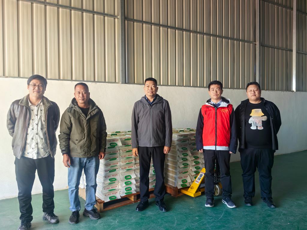 随后,帮扶团队深入当地特色产业一线,参观了村集体兴建的现代化稻米加工厂。学院一行仔细查看了生产线,详细询问了稻米的种植、加工、销售及品牌建设情况,并就产品优化、市场拓展等议题与村干部进行了现场交流。为以实际行动支持村集体产业发展,学院现场认购了当地优质大米1100斤,这一举措直接促进了农民增收,体现了“以购代捐”消费帮扶的实效。