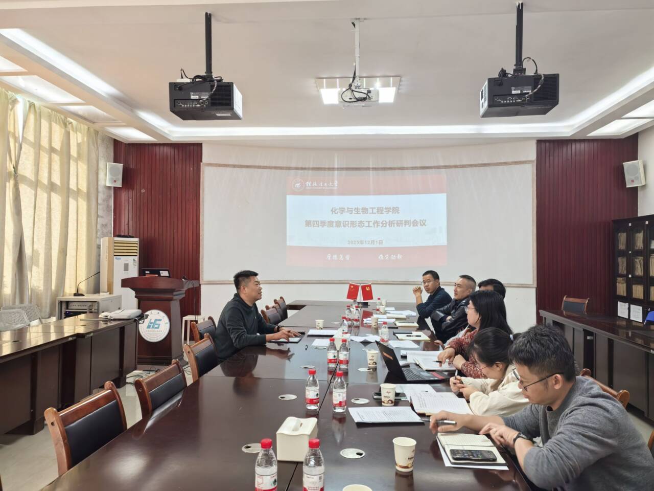 在12217会议室召开了2025年第四季度意识形态工作分析研判会议。深入学习贯彻习近平总书记关于意识形态工作的重要论述,总结第三季度工作,分析当前形势,部署下一阶段重点任务。学院党政领导参加了此次会议,会议由学院党委书记彭代江主持。