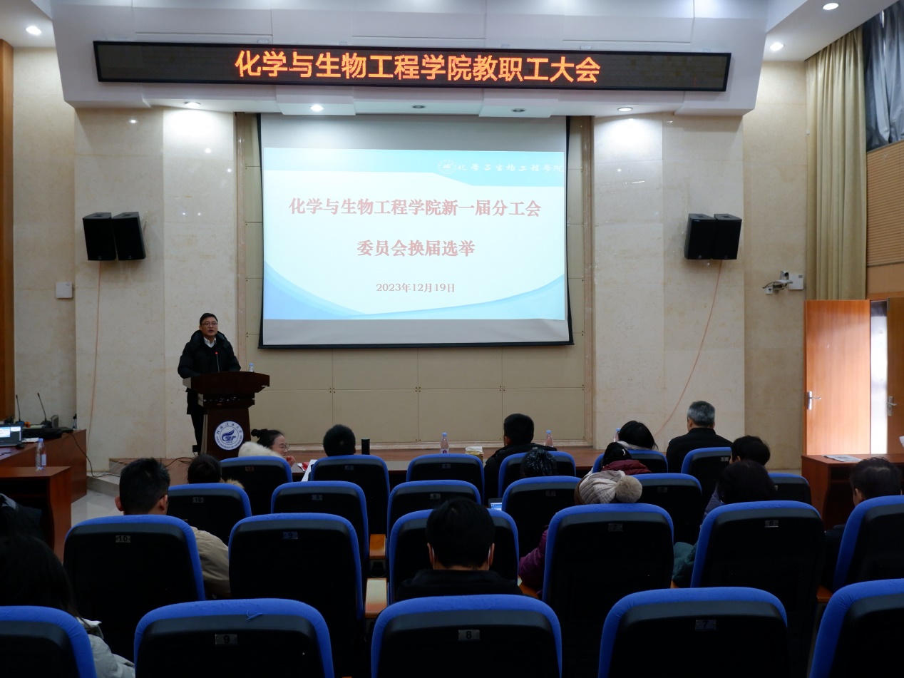 2023年12月19日下午,在雁山校区萃华楼报告厅召开了学院分工会委员会换届选举大会,学院领导以及学院工会会员参加了会议,学院党委副书记李少华主持会议。