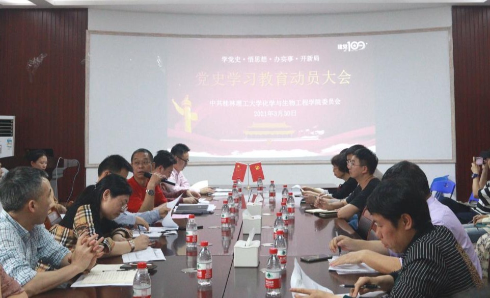 于雁山校区12217召开党史学习教育动员大会。学院全体教职工参加会议,本次会议由学院党委书记梁军主持。