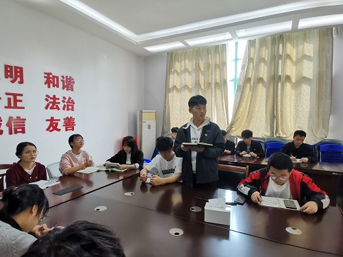 本科生第二党支部于12217会议室开展“学习纪念辛亥革命110周年大会习近平总书记重要讲话精神”主题党课学习,本次活动由韩蕙泽同志主持,支部全体党员参加。