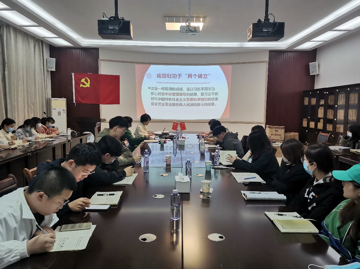 本科生第二党支部在12217会议室开展《学习全国"两会"精神》主题党课学习,本次活动由支部书记张伟颀同志主持,支部全体党员参加。
