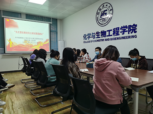 首先,黄万锦同志向与会党员介绍本次支部活动的目的及意义。接下来,每一位党员关于支部发展进行讨论,大家纷纷根据过去一段时间的所见所闻所想表达自己的看法,为支部发展党员提出建议,为支部的未来发展献计献策。一是要加强党支部理论建设,组织党员定期开展学习会;二是加强制度建设,定期召开支部党员大会和支委会;三是加强组织建设,积极开展民主评议党员大会。讨论现场气氛活跃。会议最后,支部书记朱皓同志将此次活动发言的意见进行了总结,并提出了今后支部发展党员需要注意的几点方向:一是可以建一个发展党员材料群,对材料的收集进行统一管理;二是党支部与团支部结对共建,支部学习会等活动开放学习,进行互帮互学;三是党员同志应在生活中以身作则,注重发挥党员先锋模范作用。