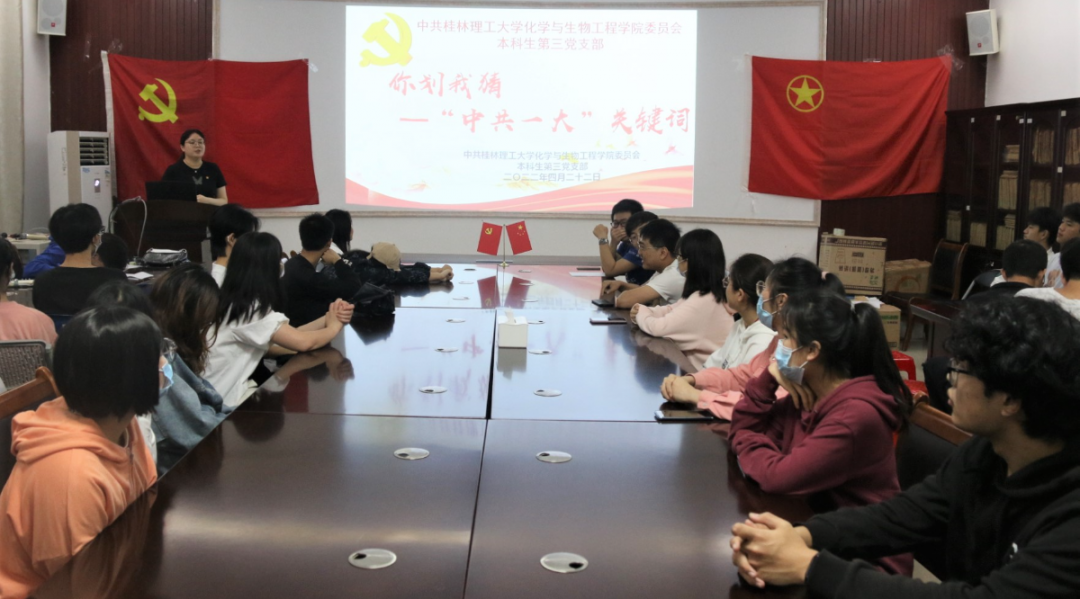 本科生第三党支部于12217教室展开“重温一大历史,传承红船精神”党日活动,以确保在政治立场、政治方向、政治原则、政治道路上始终同以习近平同志为核心的党中央保持高度一致。本次活动由张可嘉同志主持,支部35名党员参加,应化2021-创新团支部全员参加。