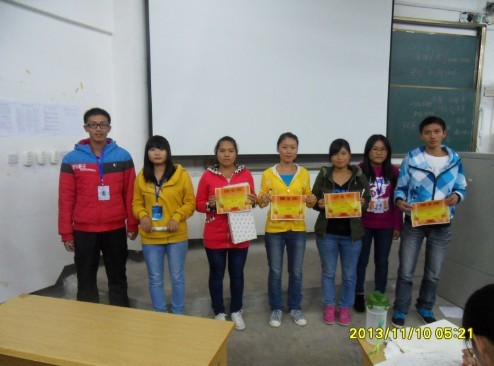 此次以“用专业眼光,大胆说出爱”为主题的专业术语表白活动受到同学们积极响应,共收到作品八十多份。同学们在抒发感情的写作基础上写出的专业术语表白词显得别具一格。日前,优秀作品的评选工作已经完成,评选结果已经出炉。11日晚,黑白直播的工作人员到获奖者所在的自习室为获奖者颁发了奖状及奖品,并与获奖者合影。在同学们的热烈的掌声中,此次比赛圆满结束。