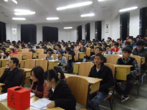 黑白直播主办的优秀学生报告团活动在雁山校区05101、05102、05103三个教室同时举行。学院全体2013级学生聆听了优秀学子的精彩宣讲。