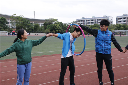 活动前,何宗辉老师致开幕词,他希望各班级班委通过今天的素质拓展活动,在体验活动乐趣的同时,增进彼此的了解,充分发挥团队协作能力,为开展好今后各项班级工作营造一个良好的氛围。在何老师发言后,各班委们已经跃跃欲试,本次素拓活动涵盖共有“五块一毛”“名字接龙”“链接加速”“十人九足”“巧解千千结”“巧过呼啦圈”共六个活动。不管是逗趣简单的名字接龙,展现超强反应力的五毛一块,紧张刺激的链接加速,还是极具考验耐心的解手链,亦或是富有挑战性的十人九足等,无一不在潜移默化的增进班委们彼此间的凝聚力和不言弃的精神。活动的最后,何老师为在活动过程中表现突出的三个班级颁发了奖品,并总结了本次活动的开展情况,最后在大家的合影中活动圆满结束。