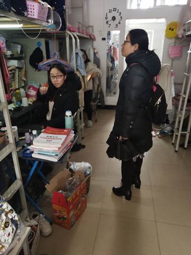 走访的过程中,老师强调整理宿舍卫生、也对安全隐患进行了排查,并询问学生学习与就业的状况。重点询问15级学生有关毕业设计的问题和就业情况,及时为同学们作引导,出建议。同时提醒同学们注意宿舍卫生和宿舍安全,强调禁止在宿舍使用大功率电器。最后,对卫生较差、存在安全隐患的宿舍进行了批评教育,并督促同学们认真整改,努力改善宿舍环境以确保宿舍安全。