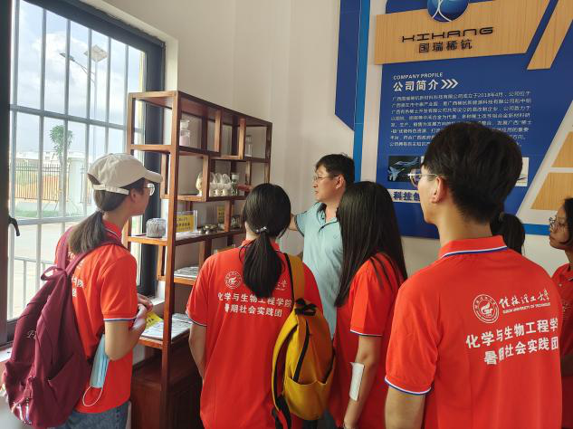 依托当地资源,助力经济发展。为了掌握稀土产业发展情况,明晰产业布局,2021年7月13日,桂林理工大学“助力产业升级,特色产业调研”稀土研究实践队前往中国-泰国崇左产业园和广西国瑞稀钪新材料科技有限公司进行了参观和学习。