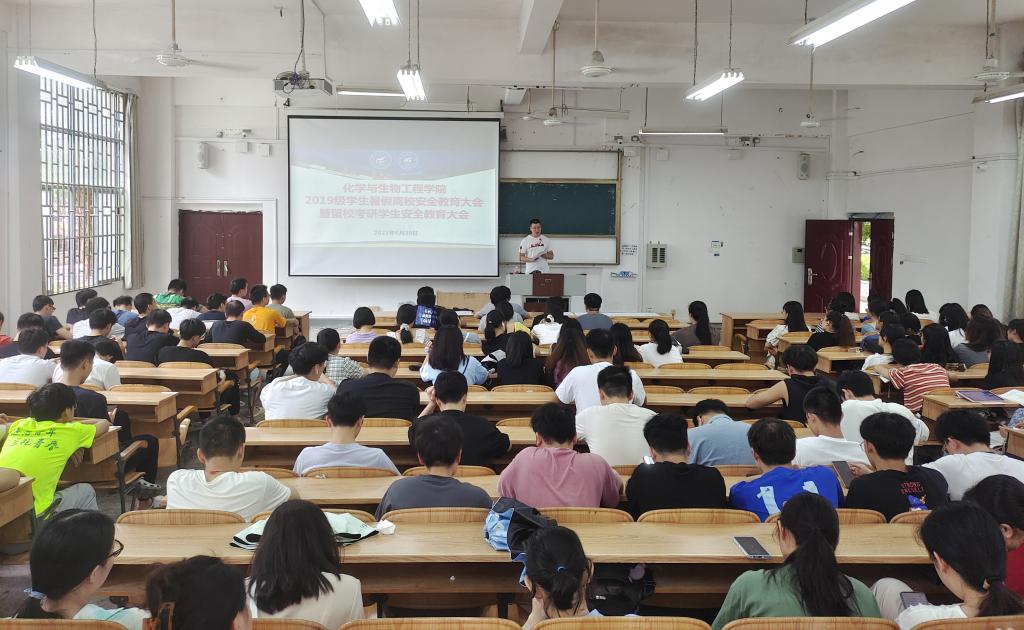 为做好学院2019级本科学生暑期留校安全教育工作,提高学生安全防范意识,确保假期留校安全。6月30日上午,学院在雁山校区06105教室召开了2019级本科学生暑期留校安全教育大会。2019级年级辅导员黄道坤、朱皓,暑期申请考研留校学生及延迟离校学生共计290余人参加了本次会议。