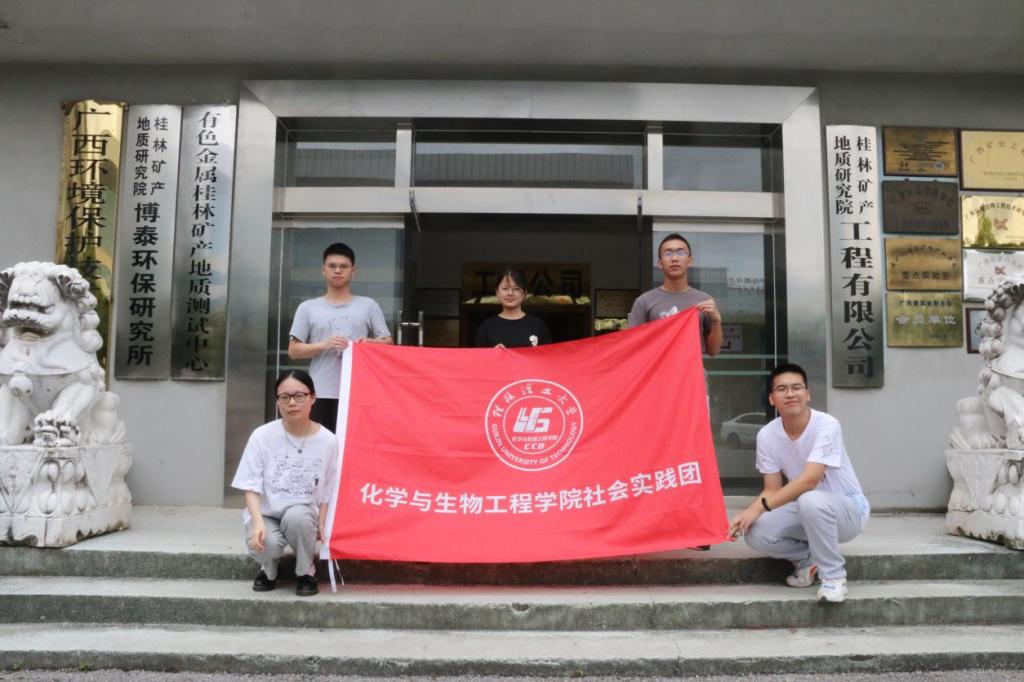 桂林理工大学“学以致用”专业实践实践团在有色金属桂林矿产地质研究院分析测试中心门口合影