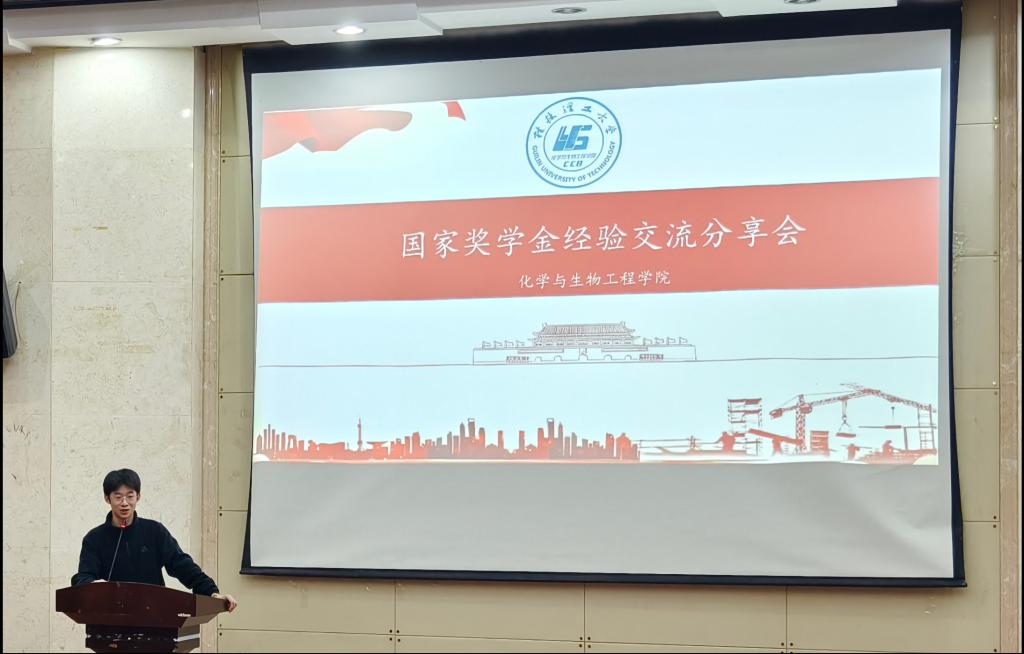 交流分享会上,两位国家奖学金获得者主要介绍了研究生学习、科研与生活情况,特别强调了学术科研的重要性。