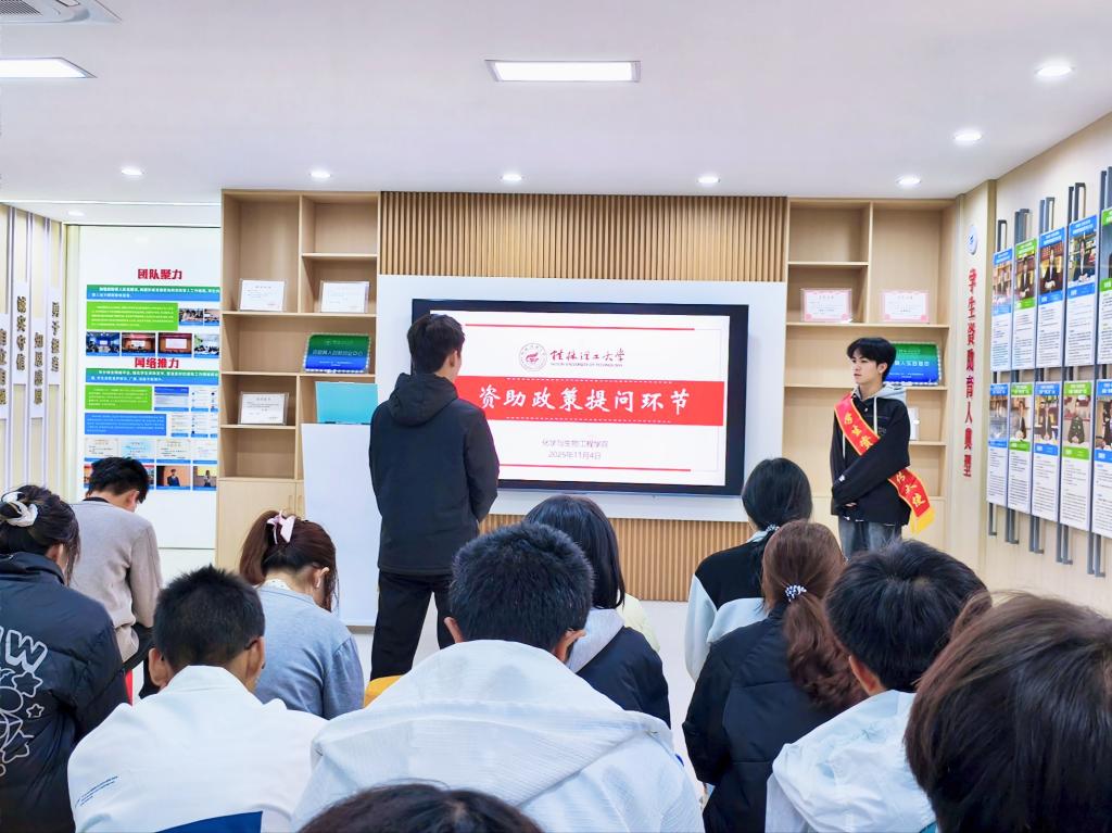 在学校资助育人实践基地开展资助政策宣讲活动,资助宣传大使何灿丽、韦砚俊、陆鹏飞、杨兰雨等4位同学为100余名学生进行了深入细致的政策宣讲。