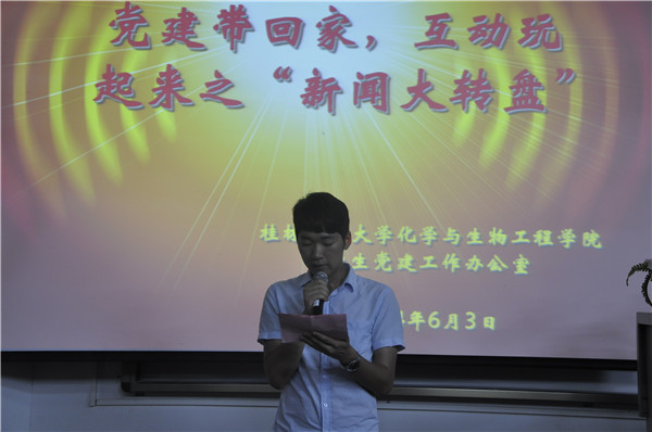 学生党建办公室主办的党建带回家,互动玩起来之“新闻大转盘”活动在雁山校区05101室举行。学生党建办公室主任何宗辉老师、黑白直播官网