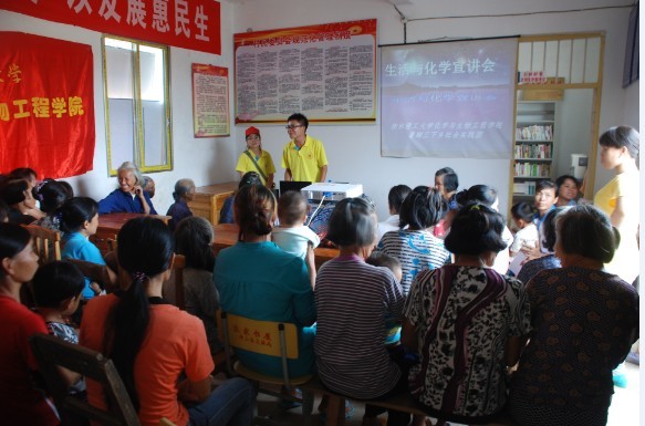 导航痕迹 当前位置: 主页 >> 学生工作 >> 共青团 >> 正文 【暑期社会实践】化生学院2013年暑期“三下乡”系列报道十――开启基层梦,夏日中国情:化学与生活及安全知识宣讲会 作者: 发布日期:2015-07-19 浏览次数: 为丰富当地群众的居家生活,打造平安幸福村庄,7月16日上午,桂林理工大学黑白直播 三下乡暑期社会实践团在广西贺州市钟山县珊瑚镇卫田村村委大院开展了以“化学与生活及安全”为主题的知识宣讲会。 16日一早,在当地村委会及妇联的帮助下,团队成员顺利的完成活动前期宣传;上午11:00宣讲会正式开始,志愿者游立和韦丽成担任主讲,他们用浅显易懂的语言向在座的各位村民讲解了日常安全、化学在生活中的作用、生活中的小妙招等知识。宣讲会现场气氛活跃,村民们积极地参与知识问答,主动的了解学习宣讲知识,宣讲会取得了圆满的成功。 宣讲会现场1 宣讲会现场2 上一条:【暑期社会实践】化生学院2013年暑期“三下乡”系列报道十一――校领导莅临珊瑚镇卫田村看望化生学院全体社会实践队队员 下一条:【暑期社会实践】化生学院2013年暑期“三下乡”系列报道七――走进基层义务支农