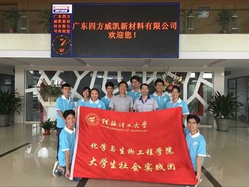 “创新促发展,践行社会主义核心价值观”暑期实践团队看,在指导老师邹志明的带领下,暑期社会实践团所有成员抵达优巨新材料研究有限公司,随后在该公司工作人员的带领下,参观该公司的研发室和生产车间,在参观过程中,工作人员详细地介绍着产品生产的整个流程,并对生产中的重要环节做出了一定的技术指导。对于始终站在公司创新发展的最前沿,勇立潮头、勇挑重担的工作人员,我们以谦虚的态度向他们提问,且得到了详细、专业的解答。
