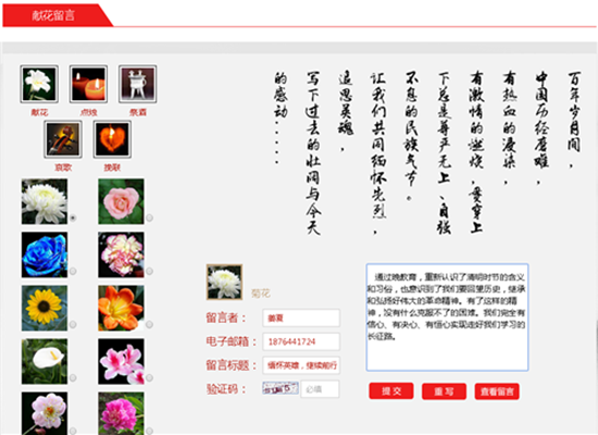 各年级辅导员利用大学生成长成才教育课堂,深入开展以“清明祭英烈,共铸中华魂”为主题的教育活动。通过为学生讲解清明节的由来、习俗以及祭祀传统,让学生深入了解传统节日的内涵。并引出共青团中央近日倡导的清明网络主题教育活动,为学生介绍包括“捍卫民族魂”“永远的丰碑”“血铸中华”等模块内容,号召学生积极在网络平台参与缅怀先烈,为先烈献花、留言,以表达自我对时代英烈的缅怀及崇敬之情。此外,还通过邀请学生上台为同学朗读《铭记历史砥砺前行,习近平这样缅怀英烈》的文章,引导学生追思心中的民族英雄。