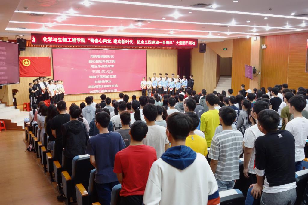于图书馆报告厅举办了青春心向党,建功新时代——纪念五四运动100周年主题团日活动。学院团委副书记黄道坤,应化2018级团支部全体成员及2017级、2018级部分学生参加了本次活动。