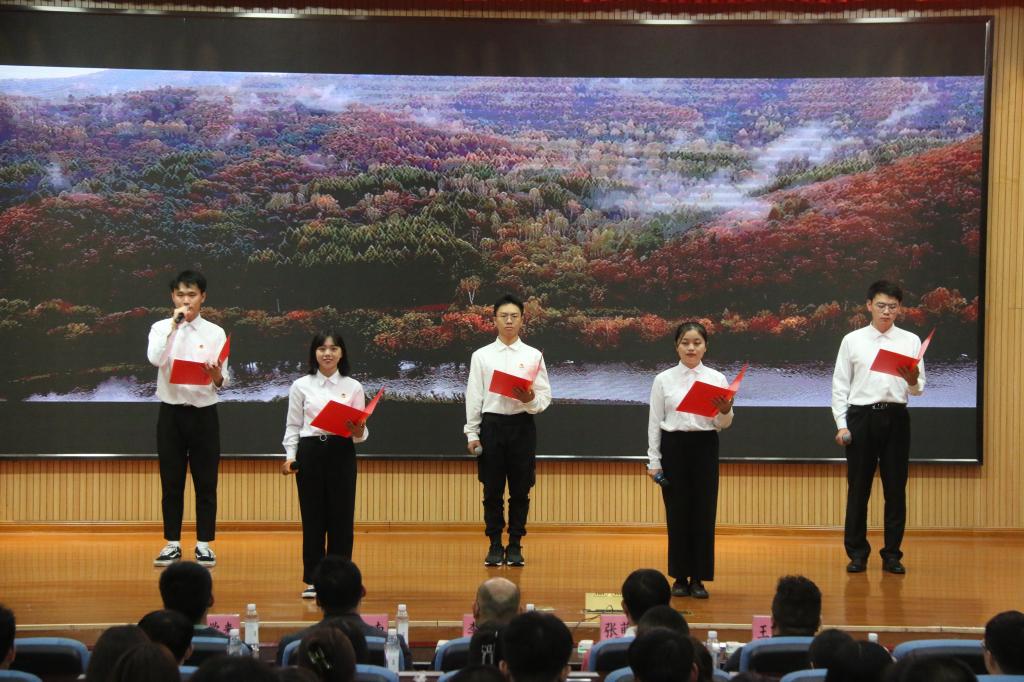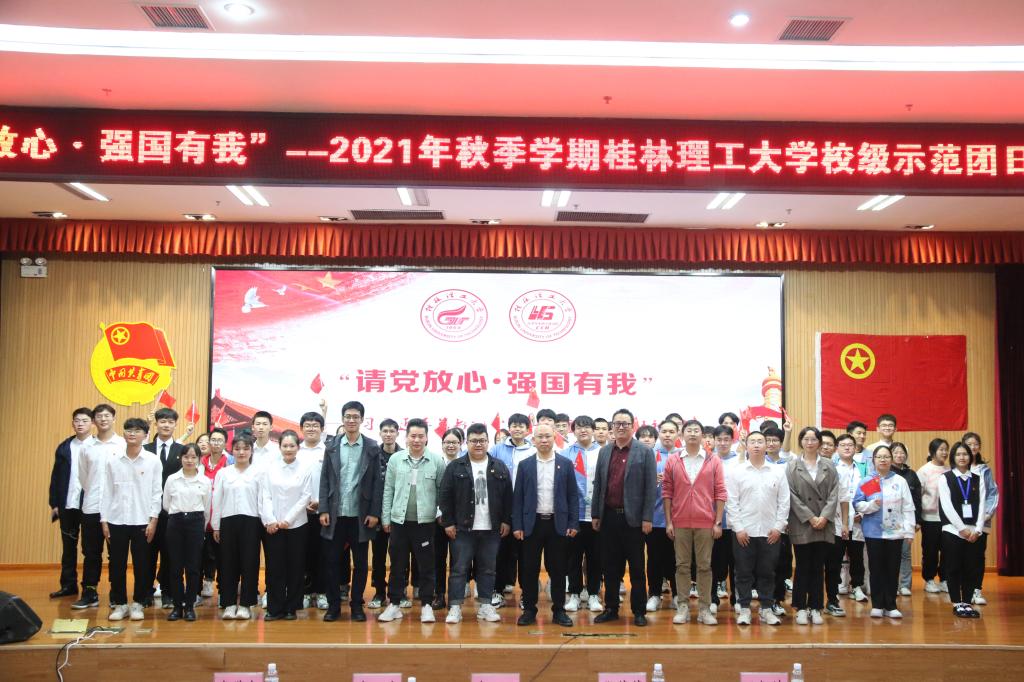 为深入学习贯彻习近平总书记“七一”重要讲话精神,持续深化我校共青团“学党史、强信念、跟党走”学习教育,引导广大团员青年努力成为实现中华民族伟大复兴的先锋力量。11月3日,2021年秋季学期桂林理工大学“请党放心,强国有我”——学习习近平总书记“七一”重要讲话精神校级示范主题团日活动在雁山校区图书馆报告厅顺利开展,活动由校团委主办,黑白直播