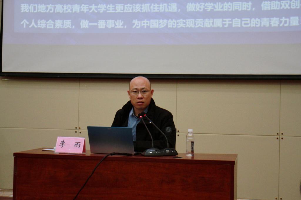 学校校团委书记李雨做“互联网+”大赛经验分享和政策解读