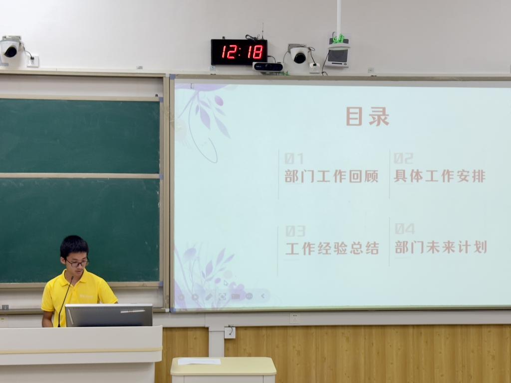 会议第一阶段聚焦工作复盘总结。各部门负责人围绕春季学期以来的核心任务逐一汇报,既梳理了校园文化活动策划、日常服务同学等方面的阶段性成果,也客观剖析了工作中存在的“部门衔接效率待提升”“活动创新点不足”等问题。宋海民老师结合汇报情况点评,肯定各部门积极作为的同时,明确要求后续需强化跨部门沟通机制,聚焦同学真实需求打磨活动质量。