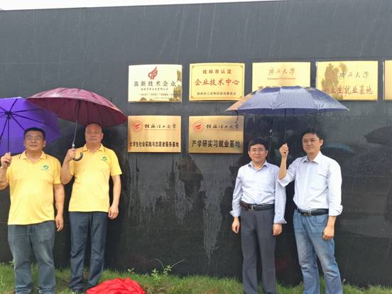 院长李建平、副院长潘宏程等一行8人到桂林集琦生化有限公司参观考察,并与公司副总经理李贵义、营销总监马志国、生产中心主任、科研质检中心主任和人力资源部长等部门负责人进行了校企合作洽谈。双方在学生就业、实习实训、产学研合作等方面达成合作意向。会谈后,李建平院长和李贵义总经理作为双方代表签订了校企合作协议,并参观了厂区、实验室和宿舍。之后举行了“桂林理工大学生社会实践与志愿者服务基地”、 “桂林理工大学产学研实习就业基地”等基地的挂牌仪式。