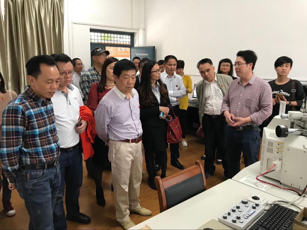 首先,为在场的企业家代表们播放桂林理工大学宣传片,在了解我校基本情况后,党委书记梁军分别介绍今天出席活动的企业家代表和学校领导。接着由我校副厅级调研员张劲松致欢迎辞,他代表学校对各位嘉宾的到来表示热烈的欢迎和衷心的感谢。感谢江门湖南商会提供的合作平台,希望在今后的合作过程中,化生学院积极地结合企业要求,围绕“双一流”建设目标要求,以服务经济社会发展为导向,为企业的发展多做“接地气”的科研,深化产教融合,着力提高高校对产业转型为先进生产力,增强学院科技发展的驱动力。最后他祝愿我校和江门湖南商会的合作能够资源共享、优势互补、合作共赢、越办越强。