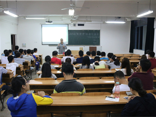 应用化学专业的同学,由2013级辅导员陈文甫老师主持。本场分享者是成功保送到中南大学分析化学专业攻读硕士研究生的邹娇学姐和考取厦门大学海洋化学专业的刘伟学长。