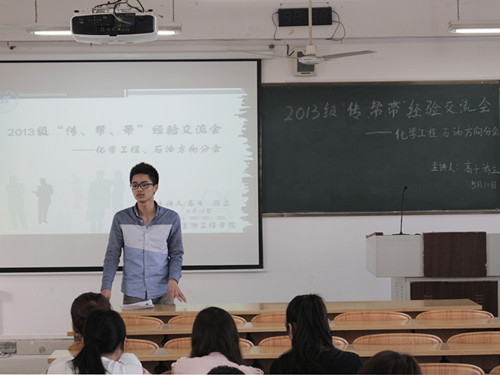510日下午3点,第二场2013级“传、帮、带”考研就业经验交流会在05207教室进行。此次经验交流会由2013级辅导员陈文甫老师主持,主要针对黑白直播官网 化学工程与工艺专业石油方向的同学。到场的分享者是黑白直播官网 成功保送华南理工大学的2012级卓越班班长高干和已考取贵州大学化学工程专业研究生游立。