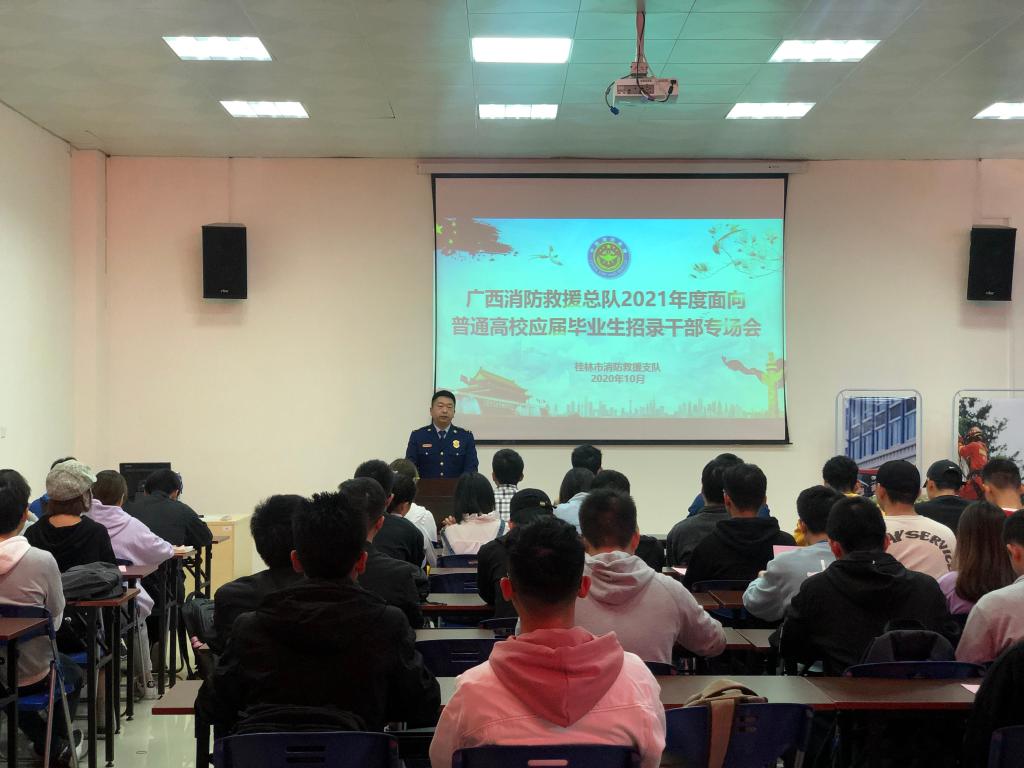 本次招聘宣讲是广西消防救援总队面对我校学生开展的招聘活动,既是对毕业生的一次就业实践锻炼,也是一次特别的职业素养教育,更为双方单位建立长期的就业协作关系奠定了良好的基础。