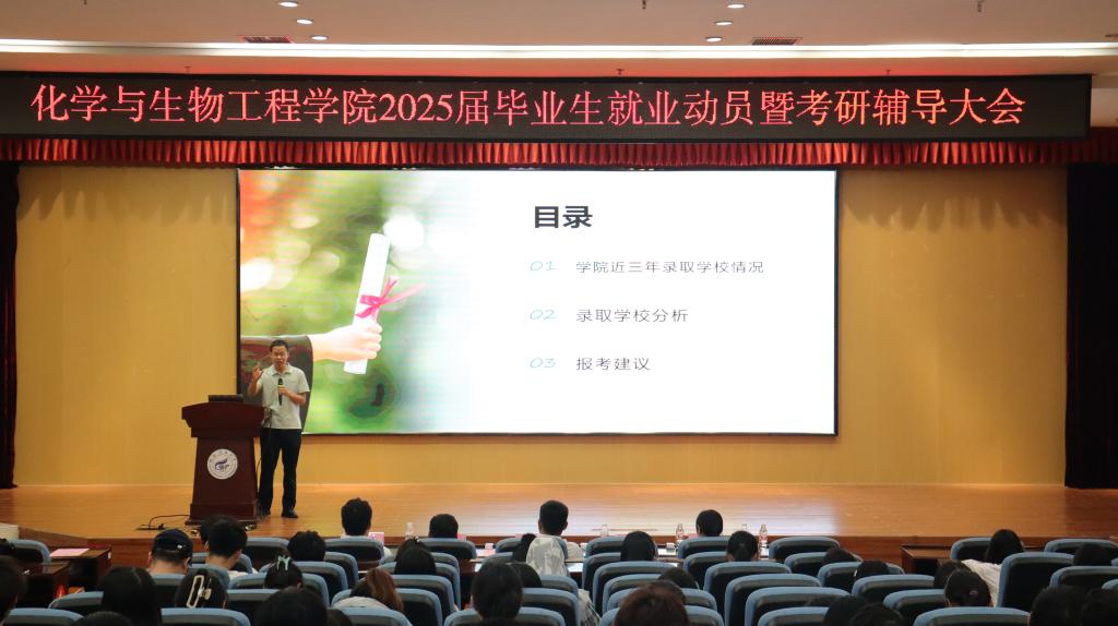 10月16日中午,学院在雁山校区图书馆报告厅召开了2025届毕业生就业动员暨考研辅导大会。学院党委书记彭代江,院长匡小军,党委副书记李少华,副院长李霞、何方、孔翔飞出席,2021级辅导员陈千癸、2024届优秀毕业生苏宸及2025届本科生参加。