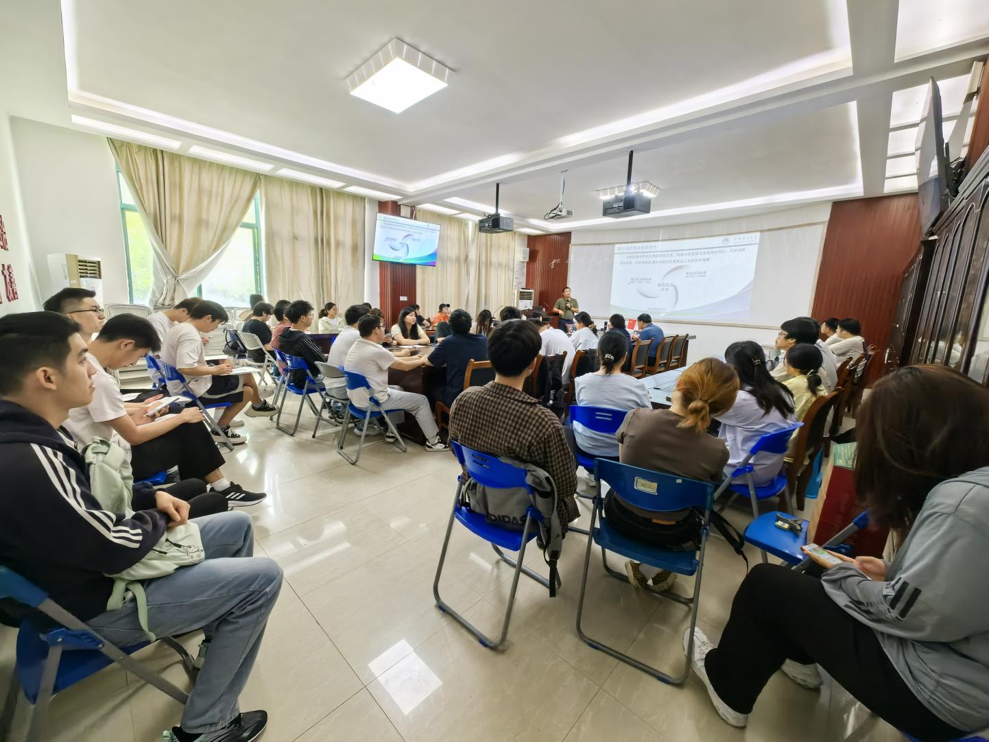 为进一步提升生物与医药专业师生的学术素养与科研视野,2026年4月13日,华南理工大学赵强忠教授应邀莅黑白直播官网 作了题为《蛋白乳浊体系稳定化关键技术及产业化应用》的专题报告。本次报告由生物工程教研室主任李静副研究员主持,黑白直播官网 生物与医药相关专业研究生和导师现场聆听了本次报告。 报告中,赵强忠教授系统阐释了蛋白乳浊体系的行业发展、稳定机制、调控技术与产业化成果。他首先梳理了我国搅打奶油行业从 1G 到 6G 的迭代历程,明确当前我国正处于植脂奶油向乳脂奶油转型的关键阶段,并对比了两类产品在特性、工艺上的核心差异;深入解析了淡奶油体系的稳定与失稳机制,清晰阐述了搅打奶油从乳浊液到稳定泡沫结构的形成过程;同时分享了团队围绕乳酸脂肪酸酯、蔗糖脂肪酸酯两种核心乳化剂的调控研究成果,揭示了其优化淡奶油性能、提升体系稳定性的关键作用;最后介绍了相关技术在多家头部食品企业的产业化转化成果,为食品乳浊体系产业升级提供了核心技术支撑。 报告结束后,现场师生围绕蛋白乳浊体系研发、乳化剂应用、产业转化等问题与赵强忠教授展开深入交流,互动氛围热烈。通过本次学术报告,参会师生不仅拓宽了生物与医药领域的学术视野,深入掌握了蛋白乳浊体系稳定化的前沿理论与实践技术,更明晰了基础研究与产业化应用的融合路径,为今后的专业学习、科研创新及学术研究提供了重要指引,也有力推动了黑白直播官网 的学术交流与高质量发展。 赵强忠教授 讲座现场 (一审:李静 二审:马文硕 三审:李霞)