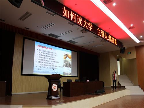 报告会伊始,陈贵英老师就“大学与你想象的是否一样”的问题与现场同学展开了热烈的讨论,活跃轻松的气氛带动了同学们的积极性。随后,陈贵英老师从自己的大学生活讲到“为什么要上大学”,同学们踊跃的表达了自己的观点。陈贵英老师记指出了当代大学生“不善沟通,怕吃苦”的缺点,同时也就“如何丰富自己的大学生活”提出了学习、生活、为人处事三方面的建议,强调了“做人大于学习,文凭是大学基本,技能提升素质”的重要性,并通过生动具体事例,为大学生如何实现大学生目标指出了具体的方法。最后,陈贵英老师与现场学生进行了深入的交流,对于学生提出的“当担任多个学生干部时,是否要考虑放弃”、“何如抵御手机诱惑,学会自律”等疑惑给予了解答。报告会在热烈的掌声中落下帷幕。
