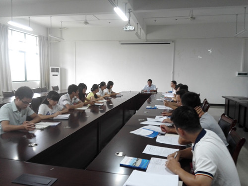 在雁山12209召开2014级新生班主任培训会。学院党委书记梁军、党委副书记陶剑飞、全体辅导员以及全体新生班主任和班主任助理参加了此次培训会。