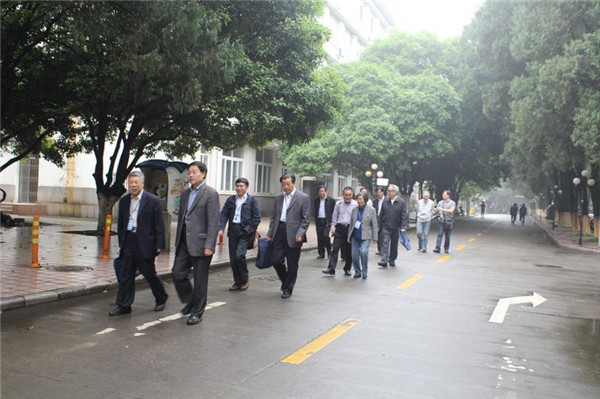 院士、专家到访我校:前排左起:张玉奎院士、陈洪渊院士、汪尔康院士、解庆林校长、俞汝勤院士、董绍俊院士; 后排左起:梁福沛副校长、庄乾坤教授、万立骏院士、陈学军副校长、杨秀荣院士、姚守拙院士、李建平教授