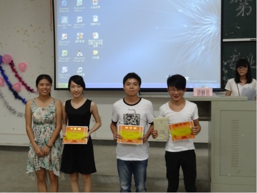 院学生会副主席张美丹获得最佳解说员奖的同学颁奖