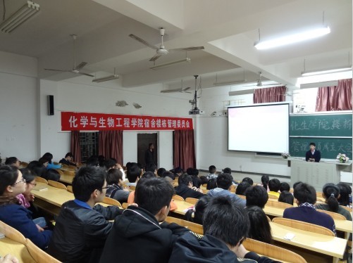 于3月26日晚7点在雁山校区05314教室举行了社区管理委员会成立大会。学院12级辅导员何宗辉老师与学院四个学生组织的主要负责人以及各年级的宿舍长一同参加了本次大会。
