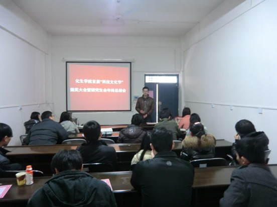 研究生会在雁山校区12栋研究生教室举行了化生学院首届“科技文化节”颁奖大会暨研究生会年终总结会,学院全体研究生会成员参加了此次会议。