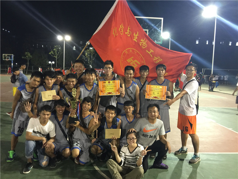每一个冠军得来的背后都有异常艰辛的付出和不懈的坚持,球队队员在军训期间就坚持每天辛苦训练,风雨无阻,为了学院的荣誉,为了球队的荣誉,他们团结一致,努力拼搏。没有汗水的挥洒,就没有赛场上的精彩一掷,没有坚持不懈的奋斗与拼搏,就没有今天的化生四连冠。我们祝贺男篮队员们,并希望他们能够将球队团结、拼搏、进取的精神贯穿始终,激励自己,感染他人。再次祝贺化生男篮实现新生杯篮球赛四连冠!
