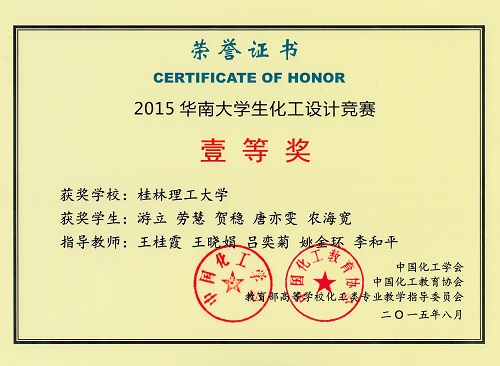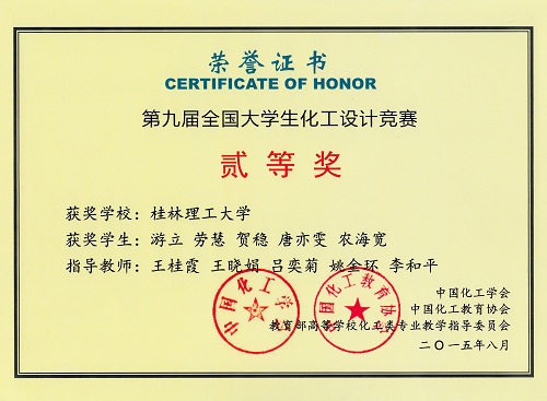 组织化学工程与工艺专业2012级21支队伍参加了第九届全国大学生化工设计竞赛,在李和平、王桂霞、刘峥、王晓娟、吕奕菊、姚金环等老师指导下,取得本届大赛优异成绩,共获得全国总决赛二等奖1项(华南赛区决赛壹等奖)、三等奖3项、华南赛区决赛三等奖7项。为黑白直播官网
