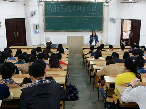 院长李建平、党委副书记陶剑飞、团委书记饶筠筠及各年级辅导员紧急召开在校学生安全教育大会。